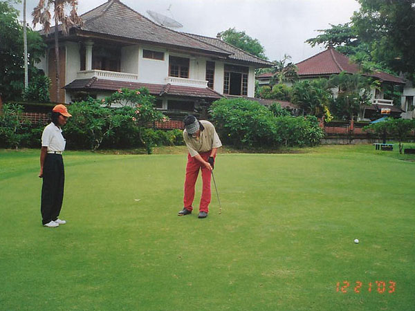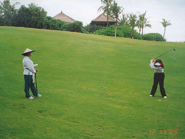 バリでのゴルフの一番の注意は、穴や溝や池にゴルフボールを入れないことだ。中に人がたくさん入っていて、ボールが迷い込んでくるのを待ち構えている。