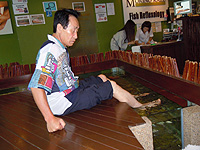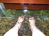 Put your feet in the tank at the fish esthetic salon |