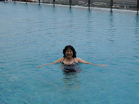 ザ・ガーデンズ&レジデンスホテルのプールは8階で真下は街が広がる |
